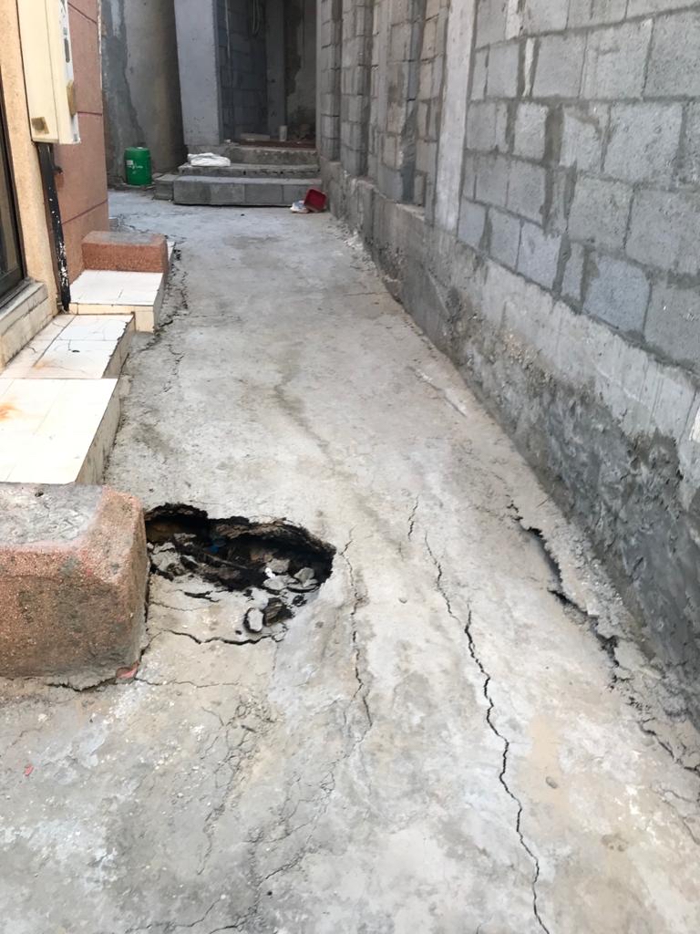 وأضاف بأن الهبوط الأرضي الذي حدث اليوم يكشف مدى خطورة استمرارية شبكة المياه وقدرتها على احداث فراغات في باطن الارطن، مما يشكل خطورة على تماسك جدران المنازل الواقعة في حي الديرة.