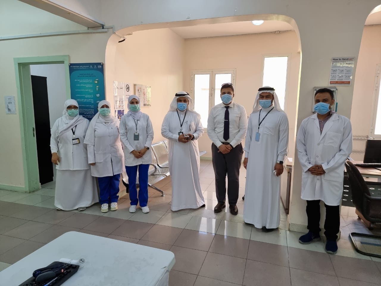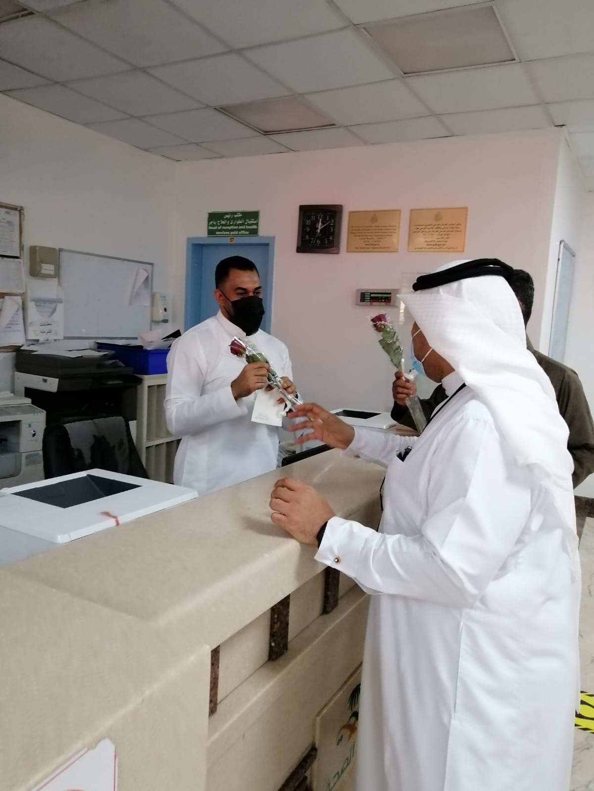 كما عايد د. رياض الموسى بمعايدة وتهنئة القائمين على مركز اللقاح بمستشفى القطيف المركزي من كادر صحي وإداري ومتطوعين بمناسبة عيد الأضحى المبارك.