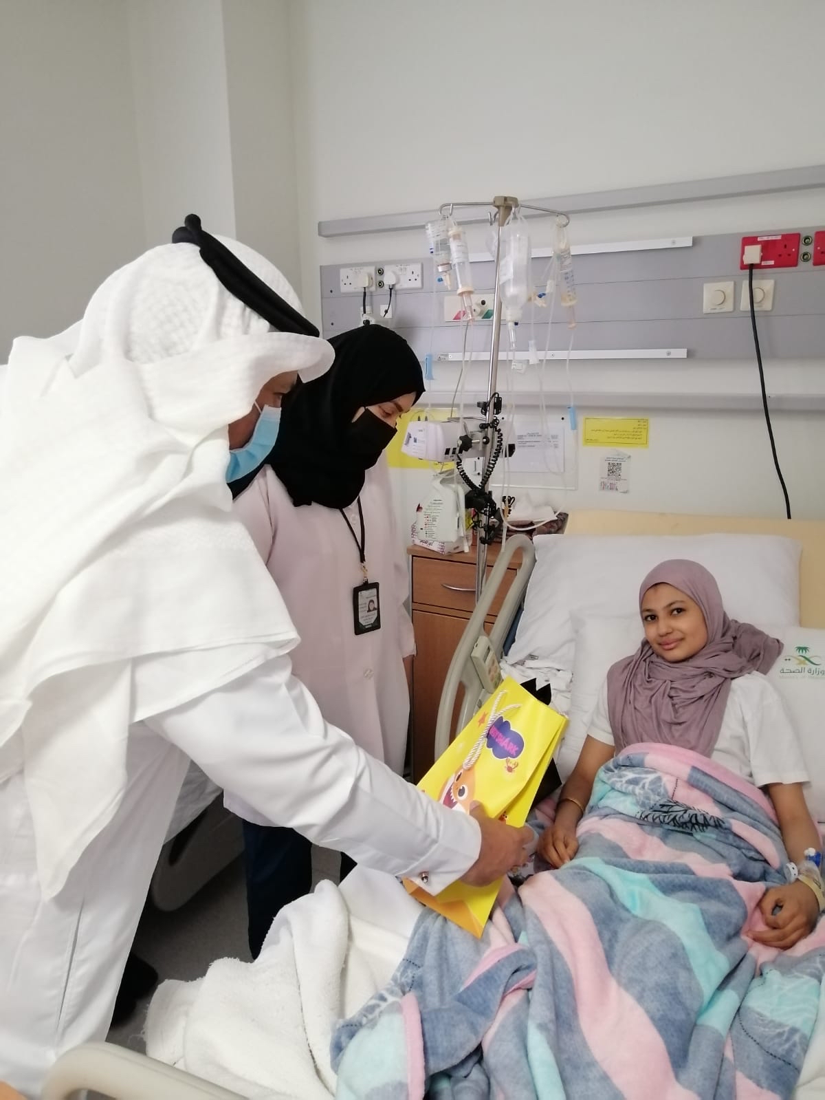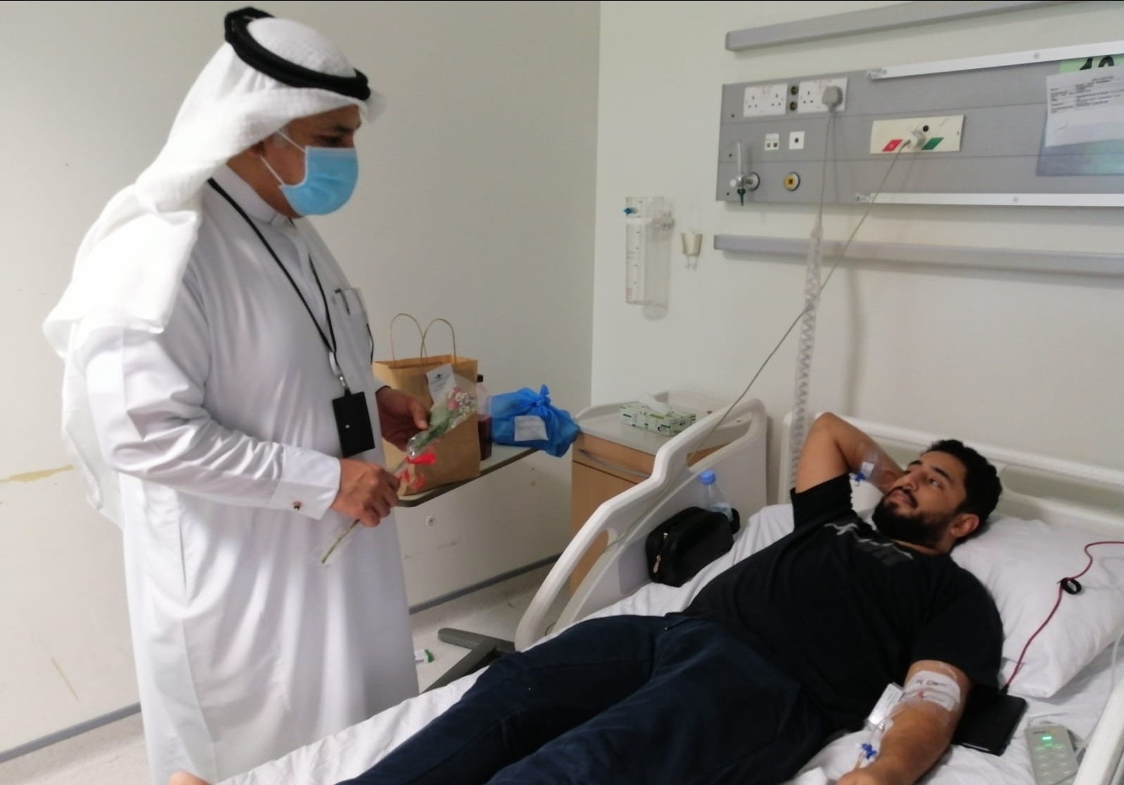 عايد قسم الخدمة الأجتماعية بمستشفى القطيف المركزي، المرضى في أقسام التنويم والطوارئ، وقدم لهم الهدايا، وذلك بحضور رئيس التشغيل لشبطة القطيف الصحية د. رياض الموسى.