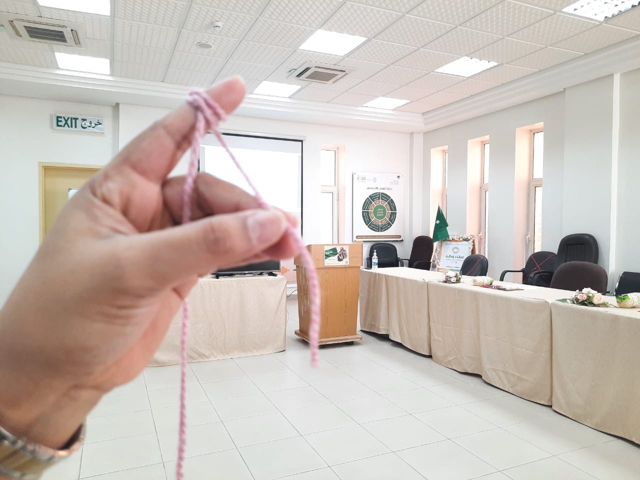 يُذكر من خلال الدورة تم تطبيق عدد من التمارين لليدين بعد الحياكة مع المستفيدات لتقليل الجهد وعرض لأنواع الباترون كالباترون المكتوب، باترون الرموز.