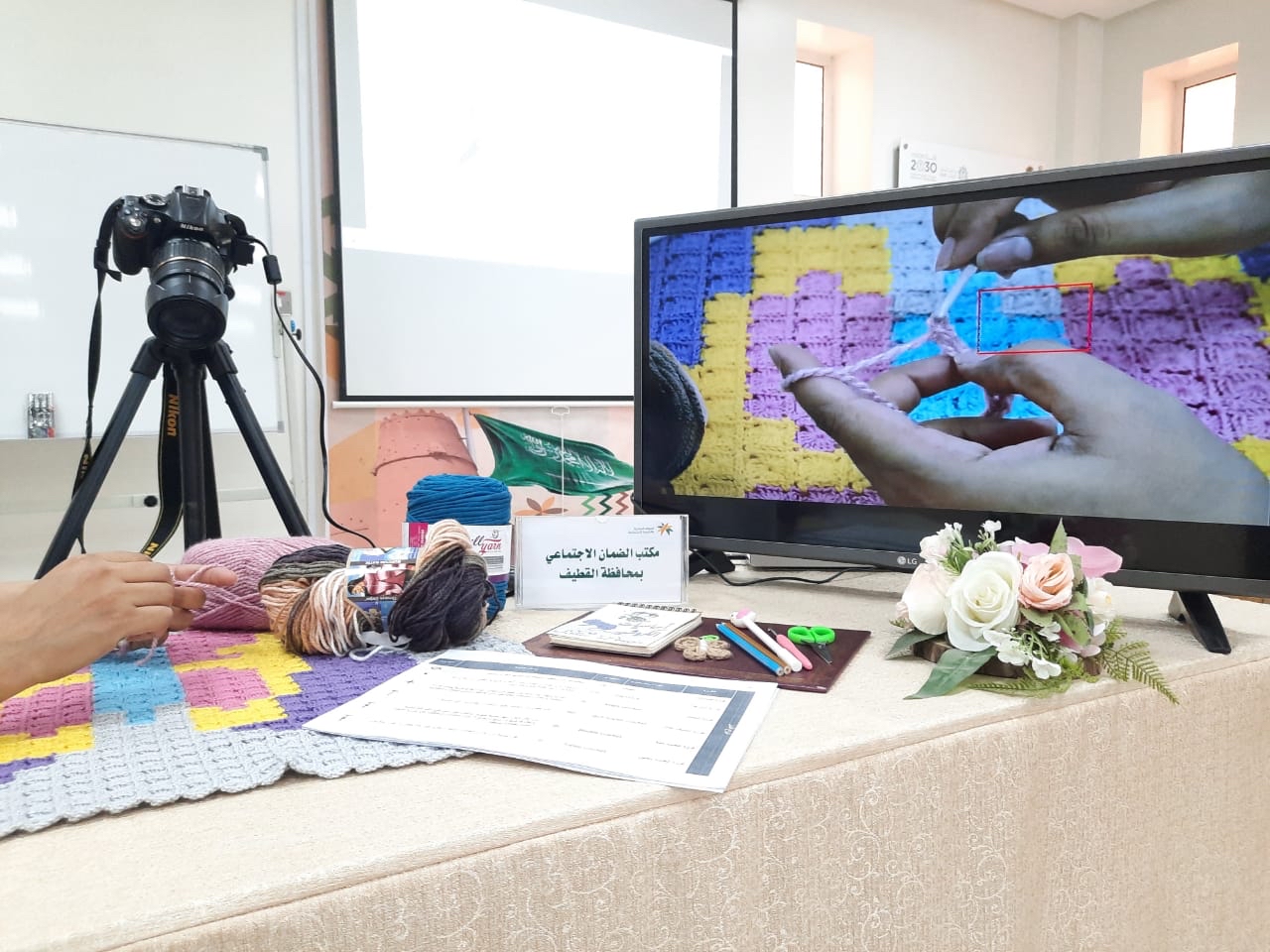 جاءت هذه الدورة لتمكين المستفيدات من خلال تدريبهم على المهارات الأساسية لفن الكروشيه، حيث تناولت الشرقي في اليوم الأول تعريف الكروشيه باعتباره أحد الفنون اليدوية القديمة وهو حياكة أو لف الخيط بالإبرة الصغيرة أو بالحبك اليدوي.