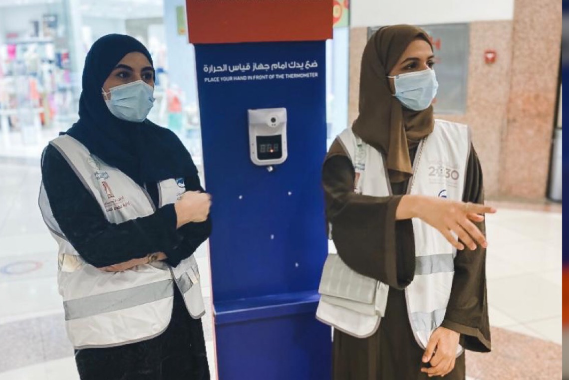 وشارك أكثر من 50 متطوعة، كان دورهن توعية المتسوقين والزائرين داخل المجمع والمحافظة على كافة الاحترازات التي نصت عليها وزارة الصحة.