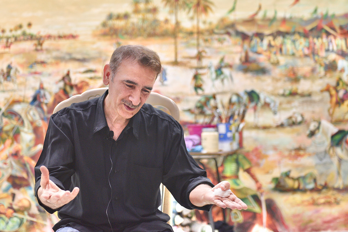 - يقول إنه استلهم اللوحة من وصايا والدته القارئة الحسينية.