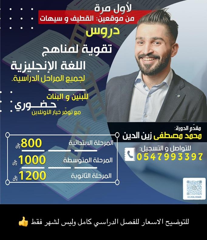 دروس تقوية لمناهج اللغة الإنجليزية لجميع المراحل الدراسية