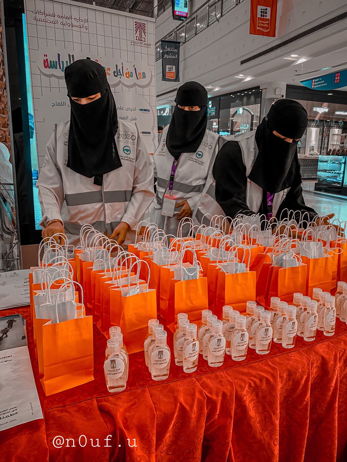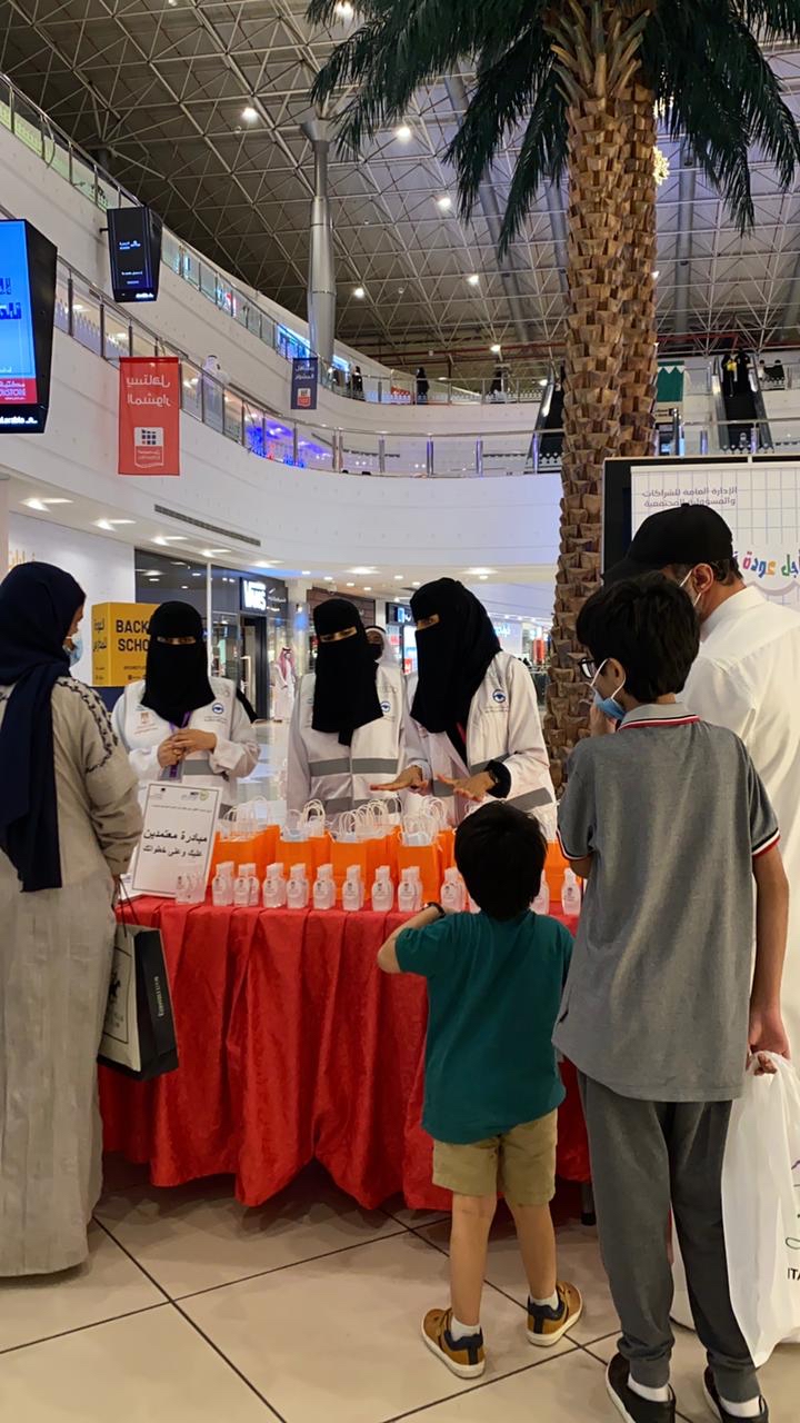 وتوزعت المتطوعات على كافة البوابات داخل المجمع وكذلك بساحة المطاعم والألعاب وتم تثبيت المنشورات الصحية داخل المحلات التجارية وخارجها وعمل الركن الصحي بتواجد خمس ممرضات.