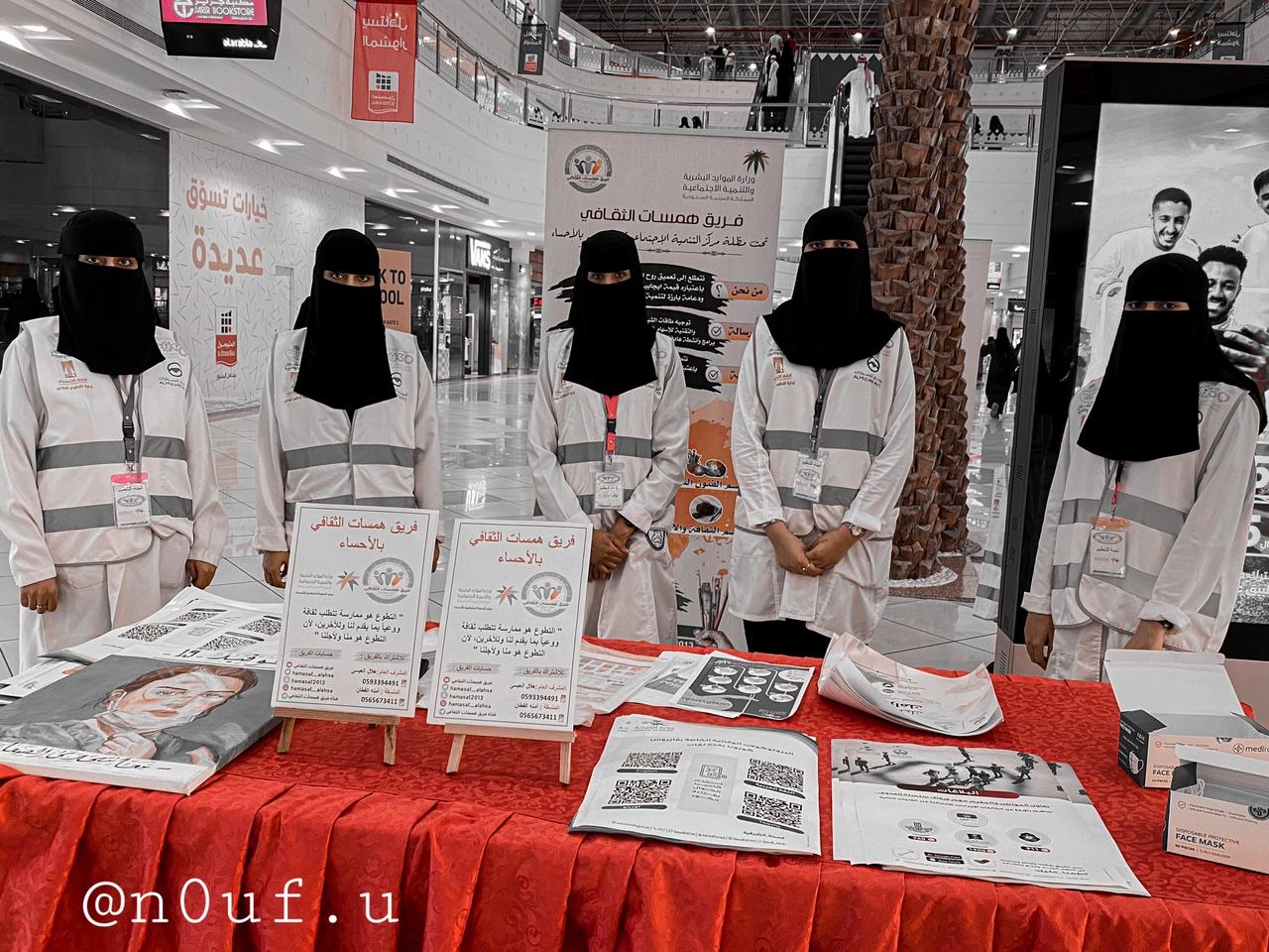 نفذت مجموعة همسات الثقافية بالأحساء مبادرة توعوية صحية تهدف إلى تثقيف المتسوقين بأحدى المجمعات بالهفوف.