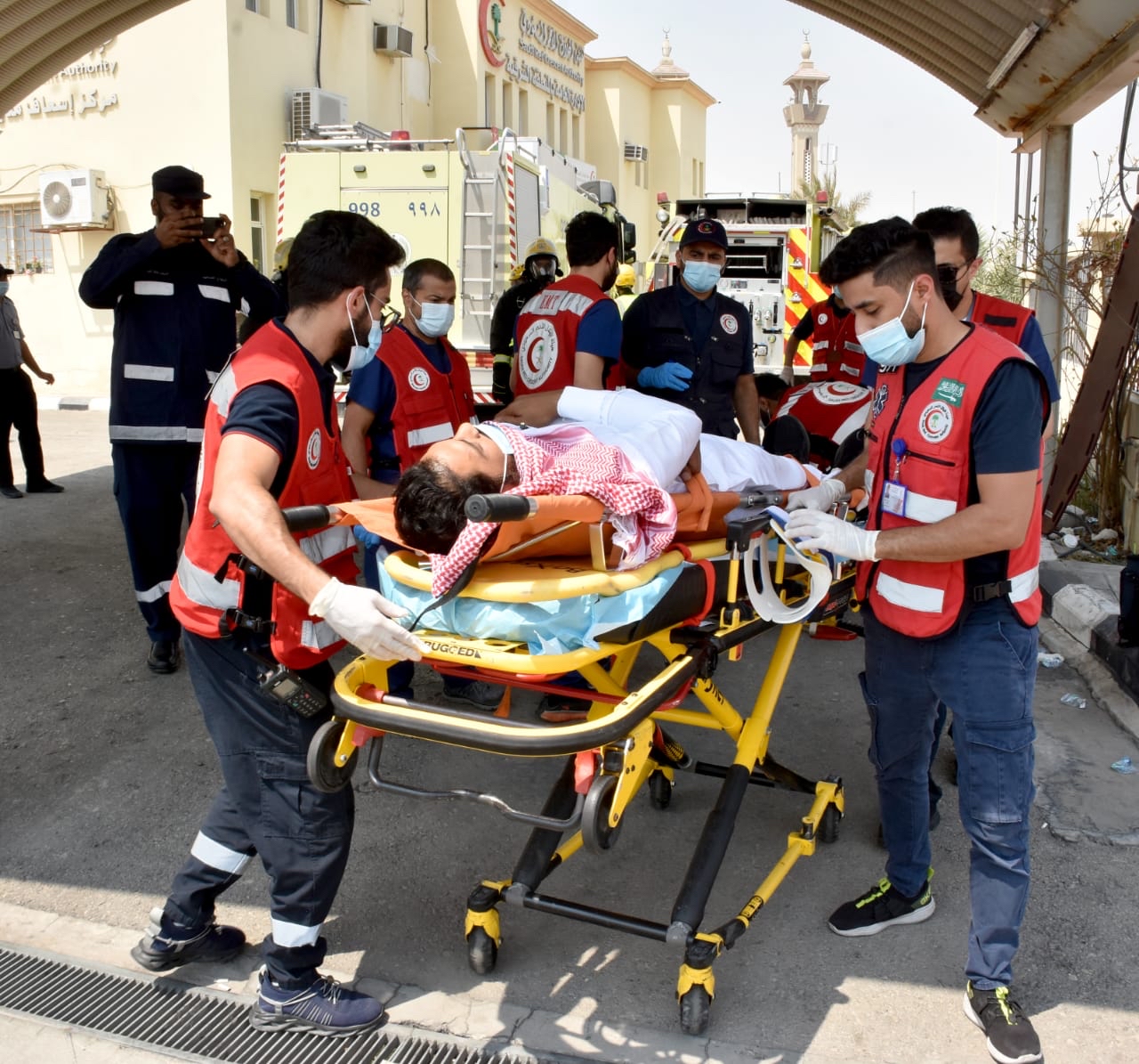 وشاركت عدد «3» فرق إسعافية من الهيئة في تقديم الخدمة الطبية الإسعافية للمصابين في الفرضية ونقلهم إلى أقرب منشأة صحية.