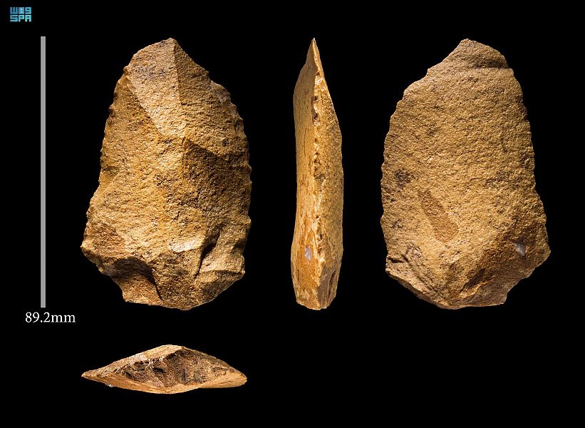 وأوضحت الهيئة أن البعثة السعودية الدولية التي شارك فيها أخصائيون من هيئة التراث ومعهد ماكس بلانك بألمانيا، وجامعة الملك سعود بالإضافة لعدد من الجامعات والمراكز العالمية المتميزة عثرت على بقايا أدوات حجرية وعظام حيوانية متحجرة، وجدت ضمن طبقات البحيرات الجافة في صحراء النفود، شمال غرب المملكة العربية السعودية.