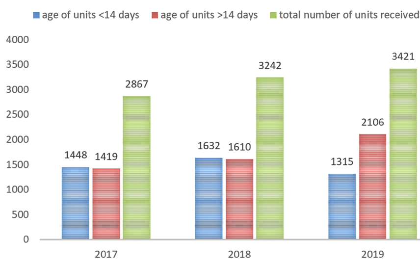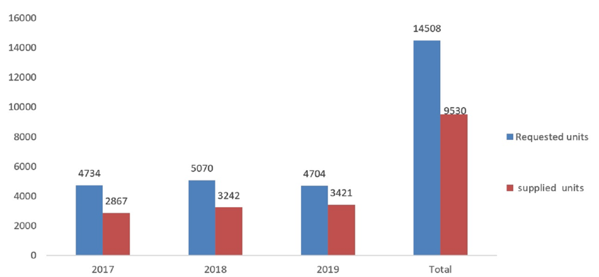 وحدات كريات الحمراء السنوية المطلوبة والمستلمة خلال فترة الثلاث سنوات. «2017n - 2019»