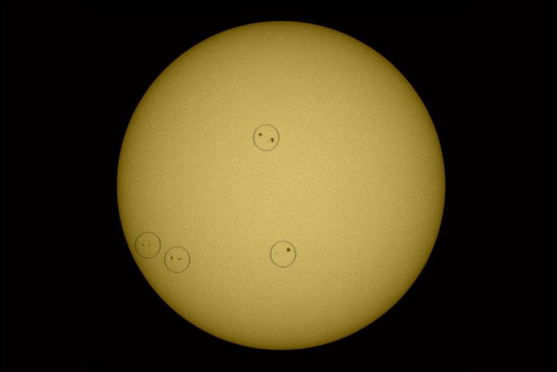 رصد صباح اليوم الأحد وجود أربع مجموعات من البقع الشمسية في وقت واحد على سطح الشمس، وهذا يحدث للمرة الثانية منذ شهر يوليو الماضي.
