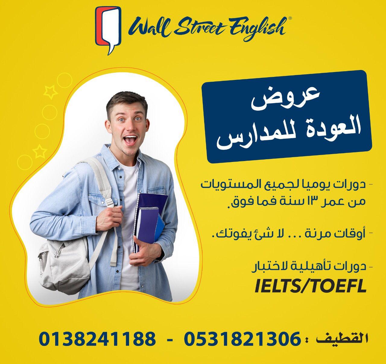 عروض العودة للمدارس ”معاهد وول ستريت إنجلش“ لتعليم اللغة الانجليزية
