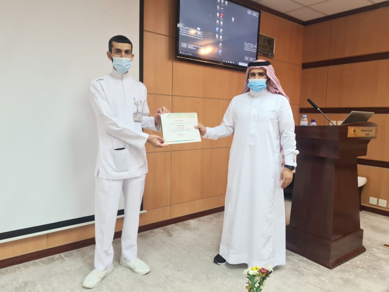 ألقى المحاضرة الممرض والمثقف الصحي هاني الحسن، موجهة لموظفي وموظفات المركز الفنيين والإداريين والمراجعين والمرضى.
