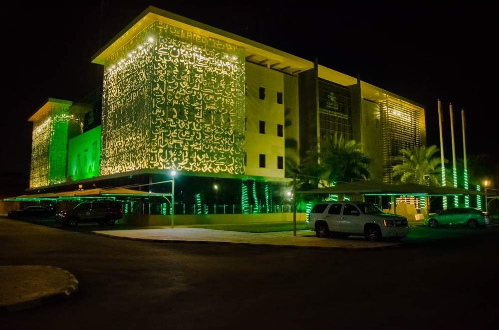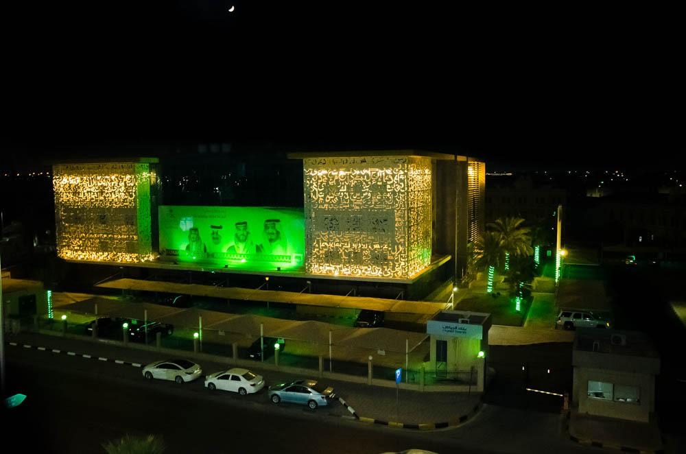 واحتضن مبناها الرئيسي صورة ولاة الأمر ”حفظهم الله“، احتفاءً باليوم الوطني 91، تحت شعار ”هي لنا دار“ وتزين مداخلها ومخارجها بالشعارات والأوشحة الخضراء.