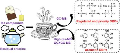 الشاي هو ثاني أكثر المشروبات استهلاكًا على مستوى العالم بعد الماء. عندما يستخدم ماء الصنبور المغلي لتحضير [لتخمير أو لتخدير] الشاي، بقايا الكلور في الماء يمكن أن تتفاعل مع مركبات الشاي لتكوِّن نواتج تعقيم ثانوية «تُعرف ب DBPs». مؤخرًا، باحثون نشروا نتائجهم في مجلة العلوم والتكنلوجيا البيئية[1] قاموا بقياس كمي لـ 60 من هذه النواتج الثانوية DBPs في ثلاثة أنواع من الشاي، ووجدوا بشكل غير متوقع مستويات أقل في الشاي المخمر مقارنةً بما وجدوه في ماء الصنبور. ومع ذلك، فقد اكتشفوا أيضًا العديد من نواتج التعقيم الثانوية DBPs غير المعروفة والتي لها تأثيرات صحية غير مؤكدة.