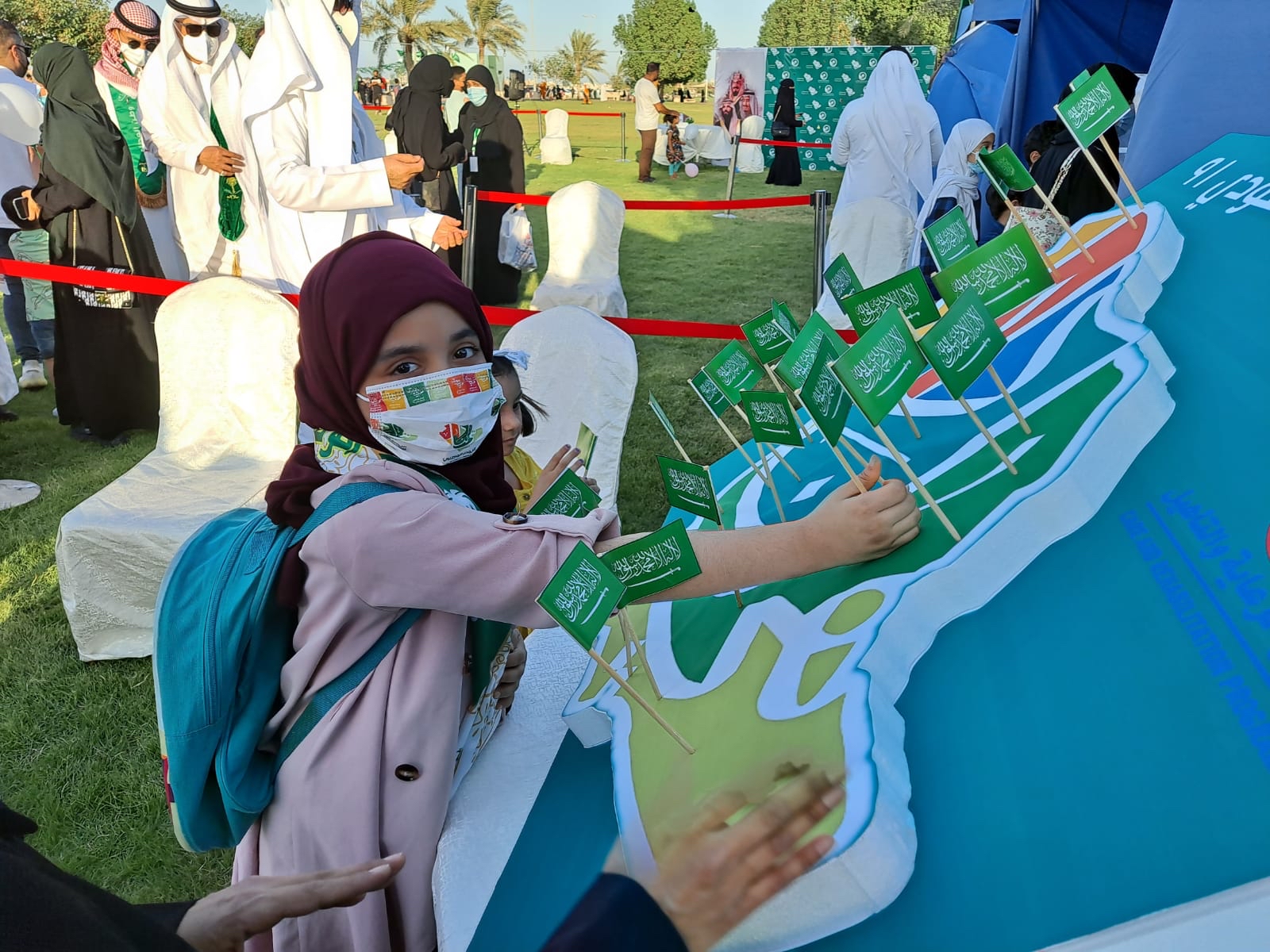 وتضمنت هذه الأركان ركن ”علم بلادي فخري واعتزازي“، وهو ركن يحتوي على غرس 91 علمًا تجسد الذكرى الوطنية 91، وركن ”لون الوطن بألوان الفرح“، الذي اشتمل على التلوين للرسومات الوطنية التي تتمثل في صور من مدن المملكة العربية السعودية وتعبر عن فرحة اليوم الوطني بالإضافة إلى مجموعة من الهدايا المخصصة للأطفال.