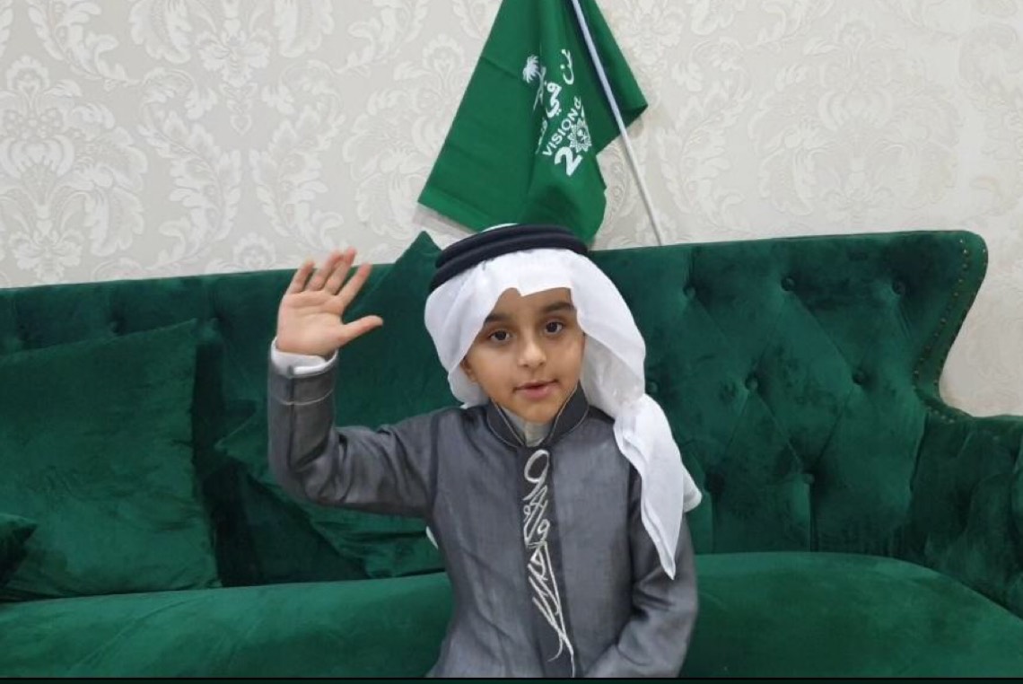 وألقى الطفل علي، والذي يدرس بالصف الأول الابتدائي، قصيدة ”هلا بيوم الوطن“، من أمام أطول جدارية في السعودية، والتي نفذها أبناء صفوى، وعبر فيها عن مشاعر الحب والانتماء لهذا الوطن.