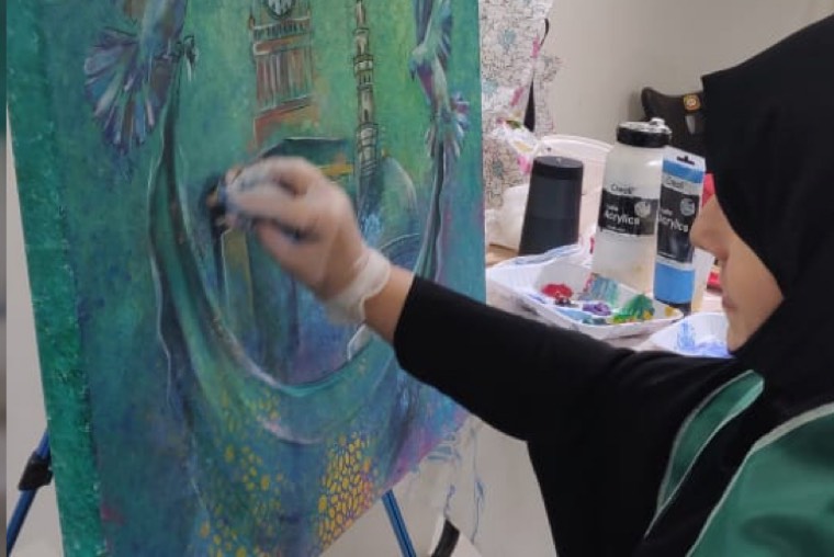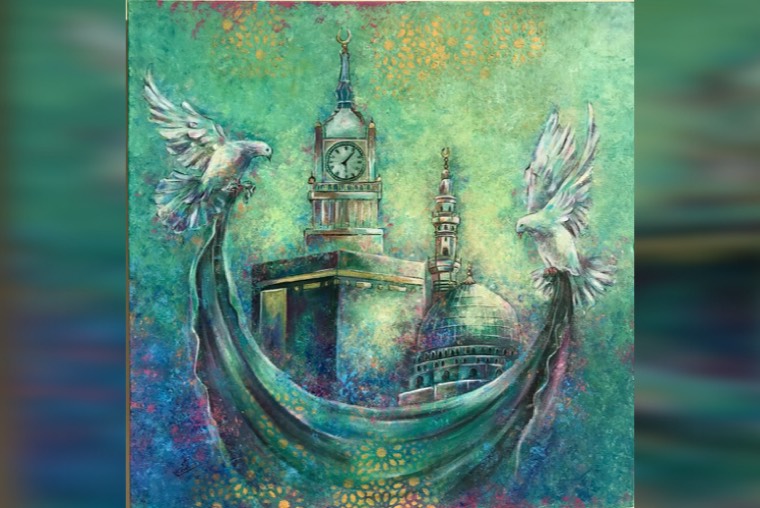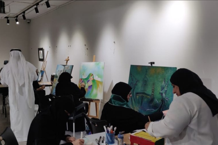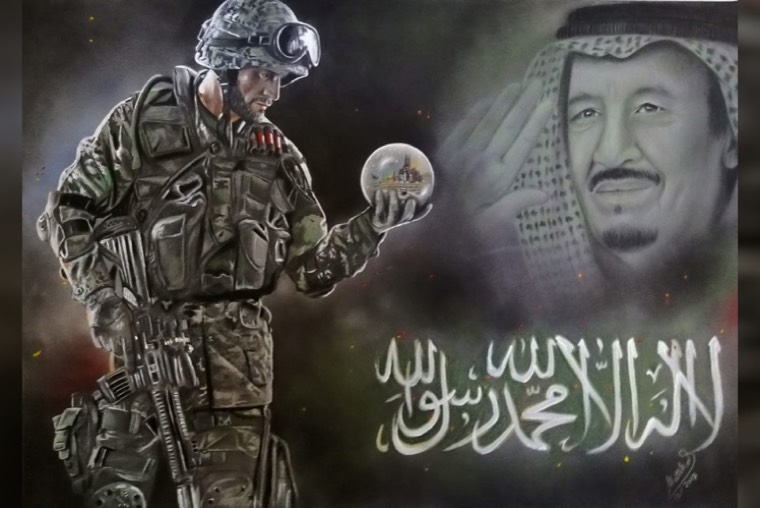 ريشة تسابق ريشة، فليتنافس المتنافسون على أديم لوحة إثر لوحة، تلاوة قصائد رسم، لأحاديث لون وأصوات خطوط متحركة، ريشة تشكل السماء خضراء، رمز للنماء وتجدد حياة، لوحات ترسم وجوه ضاحكة مستبشرة لولاة الأمر، عز الله مقامهم الكريم وتكوينات تعكس رؤياهم بعيدة النظر، ألوان وقّادة لذكاء القيادة ترنو للعلياء والنجوم، وأشكال دالة بعين الرضا مسبوغة بحمد، يارب سدد الخطى، وريشة فنان وفنانة ترسم خريطة مجد مطلية بماء الذهب، كناية حب لشعب أصيل ديدنه الجود والكرم، لوحات بأحجام مختلفة ملئ العيون، هذه تتجلى بالمعالم المقدسة وأخرى تتغنى بمعمار الأسلاف، تجاورهما لوحة أفراح أمة بشموخ الأمجاد،