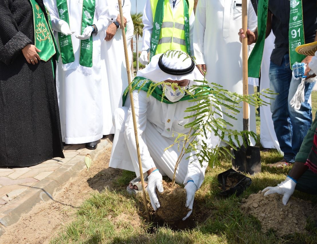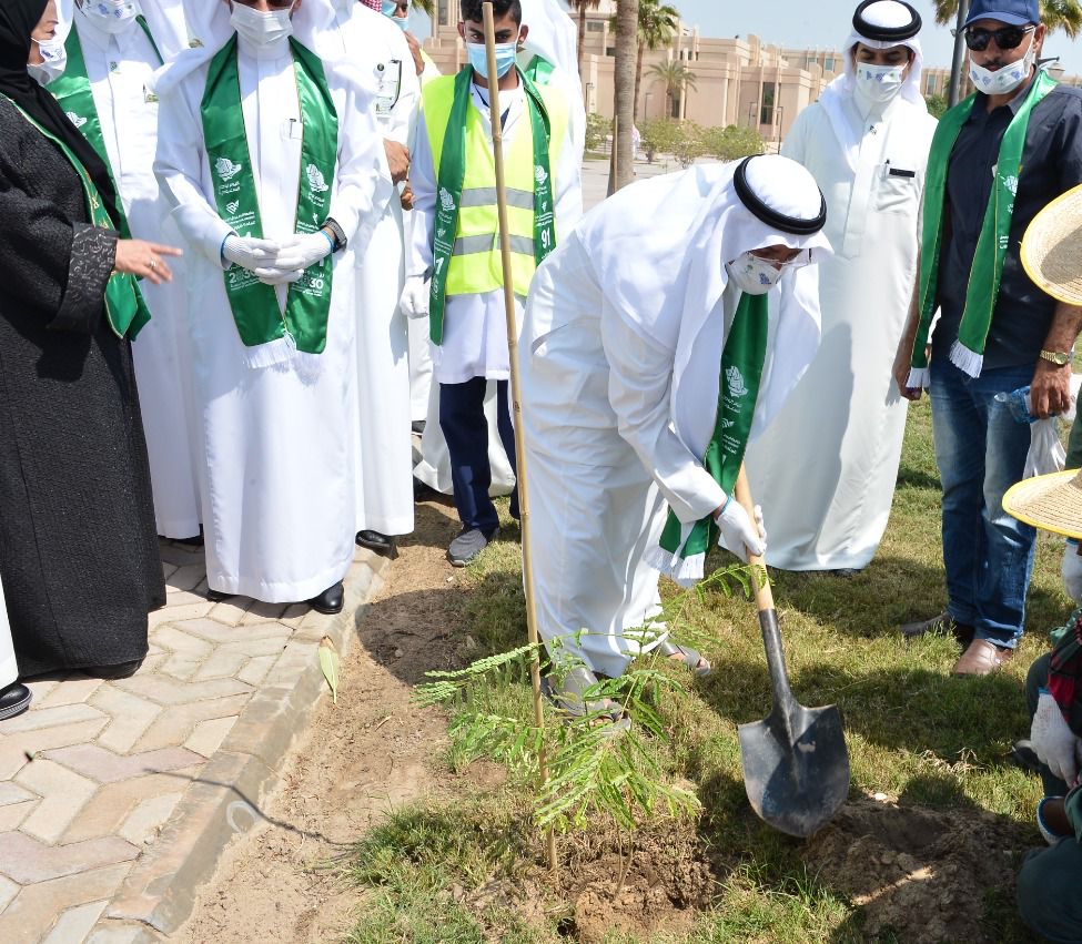 دشن رئيس جامعة الإمام عبدالرحمن بن فيصل د. عبدالله الربيش، مبادرة «جامعة خضراء بلا كربون»، والتي تنفذها الجامعة، ممثلة بعمادة خدمة المجتمع والتنمية المستدامة، بالتعاون مع وزارة البيئة والمياه والزراعة فرع المنطقة الشرقية، ومنصة «نباتك» للتشجير الرقمي، وذلك في الساحة الرئيسية لحرم الجامعة الغربي، بالتزامن مع حفل الجامعة بمناسبة اليوم الوطني 91.