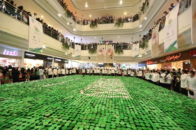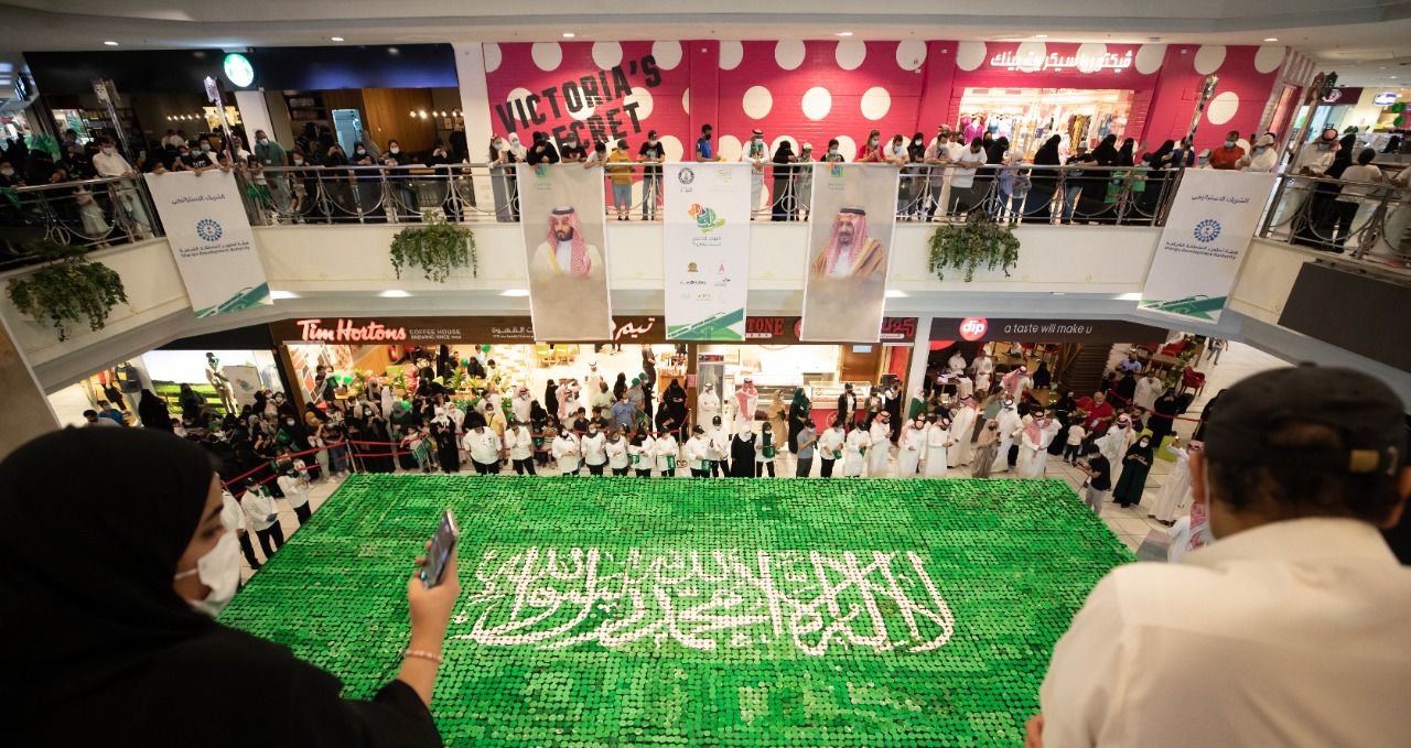 حققت المنطقة الشرقية رقمًا عالميًا جديدًا، في موسوعة جينيس للأرقام القياسية؛ ليسجل باسم المملكة، احتفاء باليوم الوطني الحادي والتسعين، من خلال تشكيل أكبر علم بمنتجات غذائية محلية «كب كيك» على مستوى العالم.