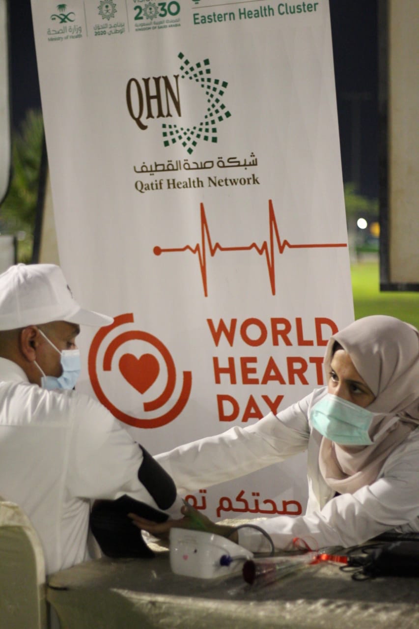 بمناسبة ”اليوم العالمي للقلب“، أقام قسم التثقيف والتوعية الصحية بشبكة القطيف الصحية، بالتعاون مع أمراض القلب، فعالية في مواقع متعددة، منها مستشفى القطيف المركزي، والمراكز الصحية، وكورنيش القطيف.