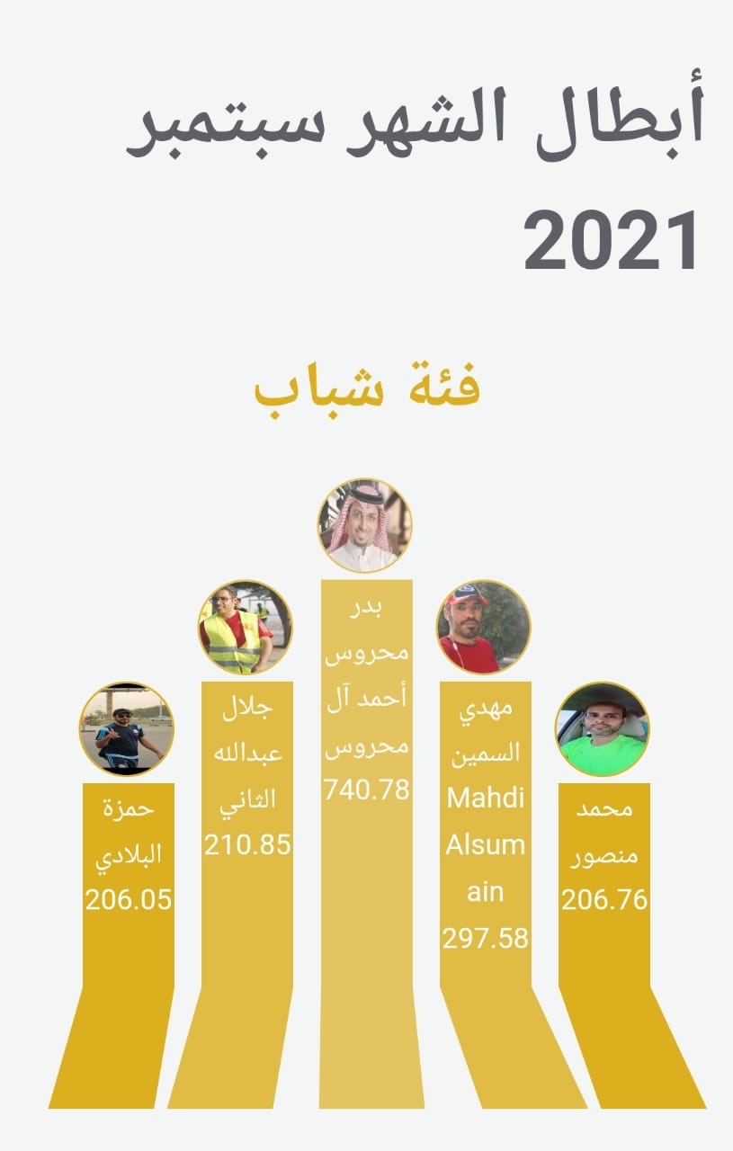 حقق ”مشاة القطيف“، المركز الأول في المشي على مستوى الشرقية، في شهر سبتمبر الماضي، إذ حقق المركز الأول في فئة فوق 50 سنة ”فتحي محمد الضامن“، ب900 كليو، وفئة الشباب ”بدر محروس المحروس“ ب740 كليو.