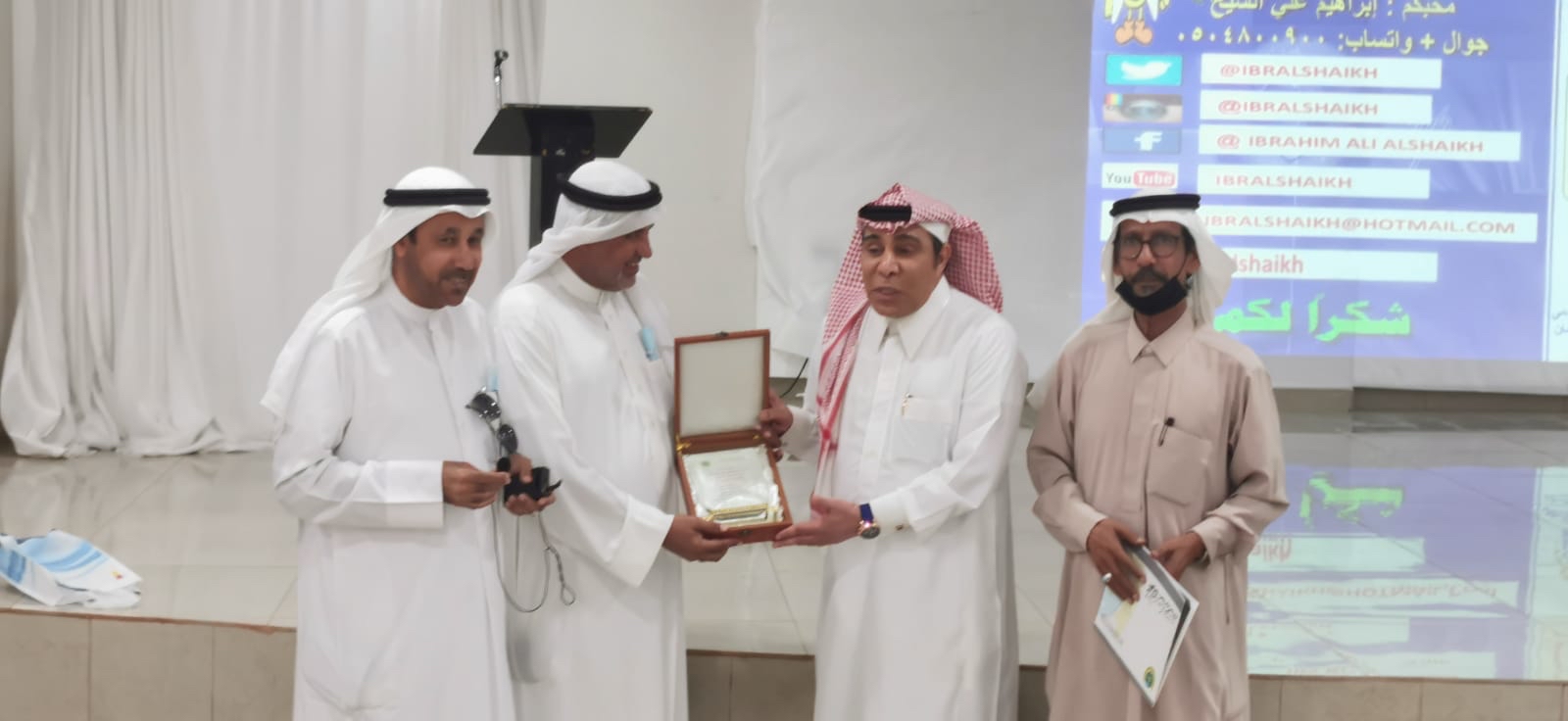 وفي ختام الورشة قدم رئيس لجنة التدريب والتوظيف م. محمد النابود جزيل الشكر والعرفان لجميع المشاركين في الورشة، وتم منح المدرب ابراهيم الشيخ درعا تذكاريا بهذه المناسبة.