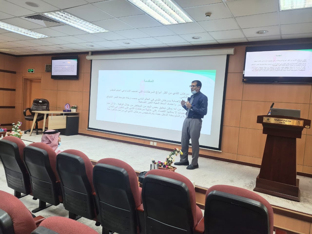 وشملت الفعاليات محاضرة ألقاها أخصائي طب الأسرة الدكتور علي الحمد، تطرق فيها للمرض وعلاماته ومضاعفاته وكيفية الفحص الذاتي وأهمية الماموجرام وطرق الوقاية منه.