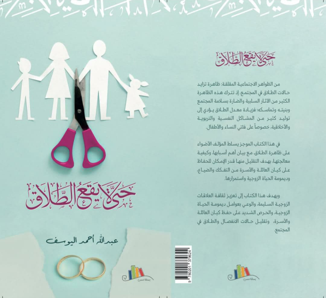 صدر كتاب «حتى لا يقع الطلاق» للمفكر الإسلامي سماحة الشيخ الدكتور عبد الله أحمد اليوسف، ضمن إصدارات دار بسطة حسن للنشر والتوزيع سنة 1443 هـ - 2021م. والكتاب في الأصل محاضرة لسماحة الشيخ الدكتور اليوسف ألقيت في 14 من شهر رمضان المبارك 1442 هـ الموافق لـ 19 شهر أبريل 2021م بمدينة سيهات.