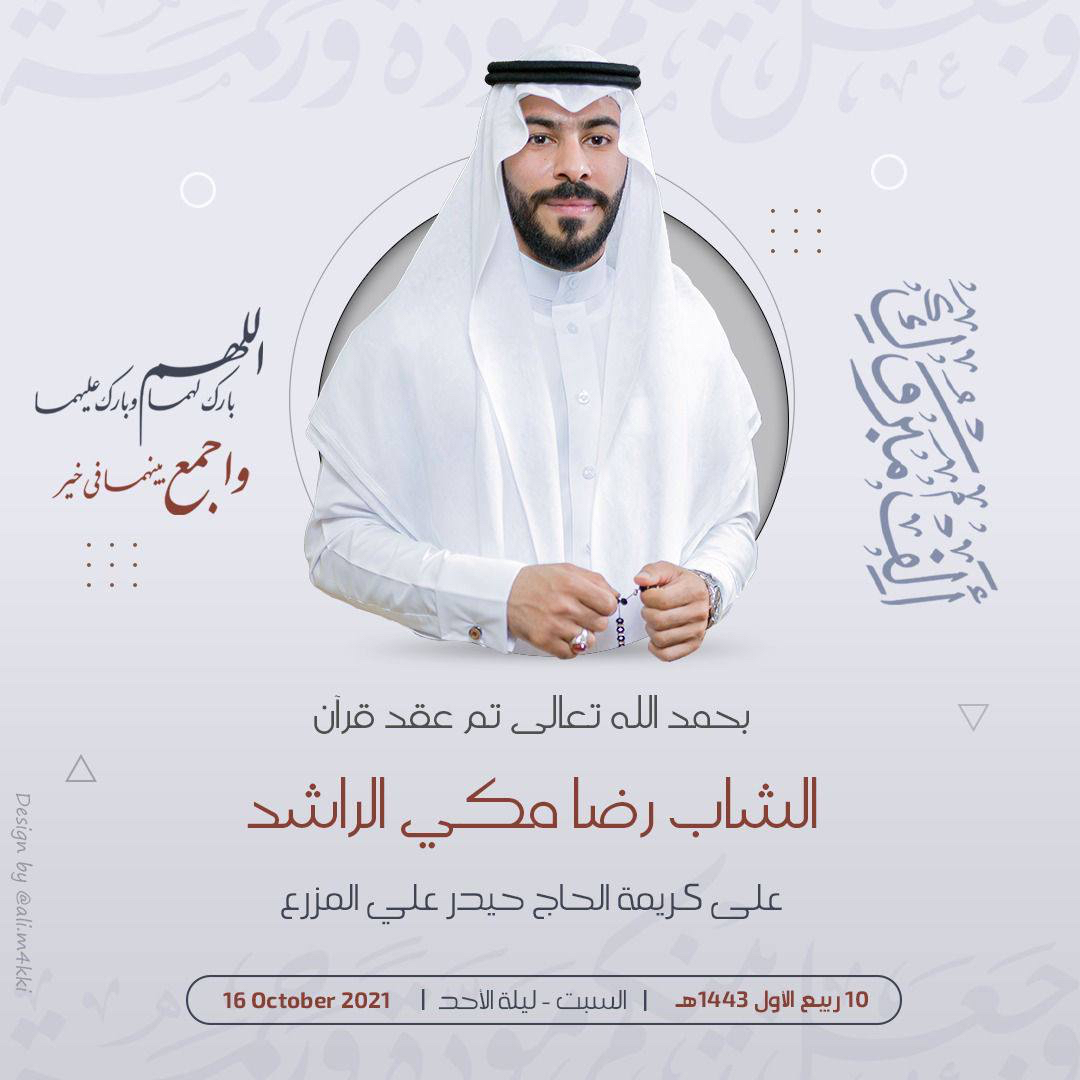 احتفلت عائلة الراشد والمزرع في سيهات مساء يوم السبت بعقد قران الشاب رضا مكي الراشد على كريمة الحاج حيدر علي المزرع وسط فرحة الأهل والأصدقاء ومحبي العريسين.