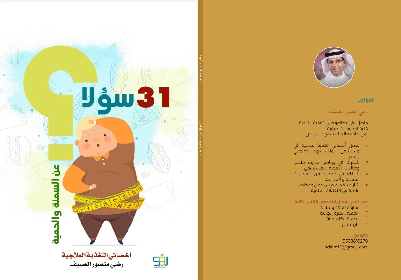 صدر حديثا لاختصاصي التغذية العلاجية رضي العسيف كتابًا حمل عنوان «31 سؤالاً عن السمنة والحمية».