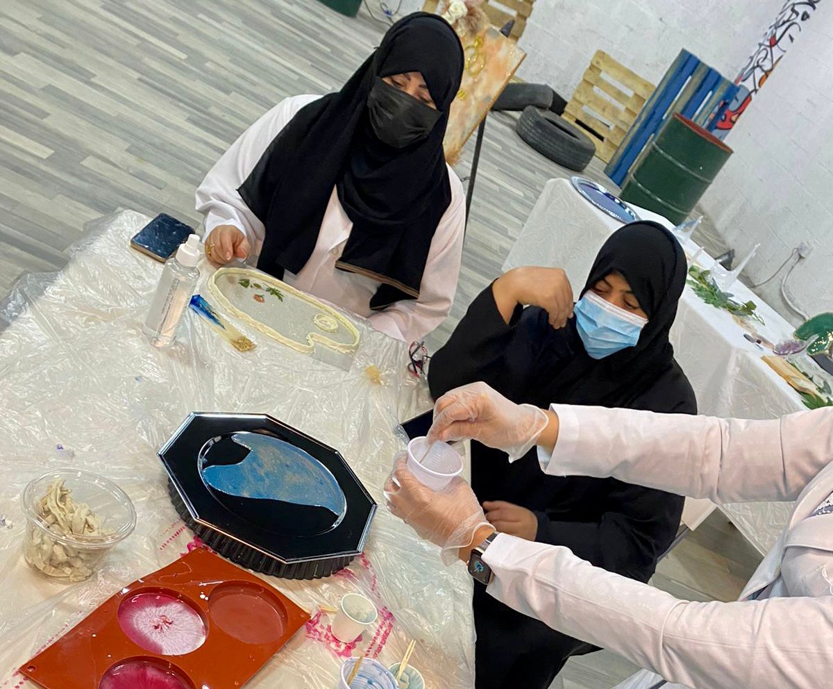 وبينت المشرفة على البرنامج الفنانة التشكيلية سلمى الشيخ بأن محاور الورشة ارتكزت على التعرف على مادة الريزن والتدوات والخامات والقوالب الخاصة به والتقنيات المختلفة لصب الريزن والمكملات والاضافات والاكسسوارات.