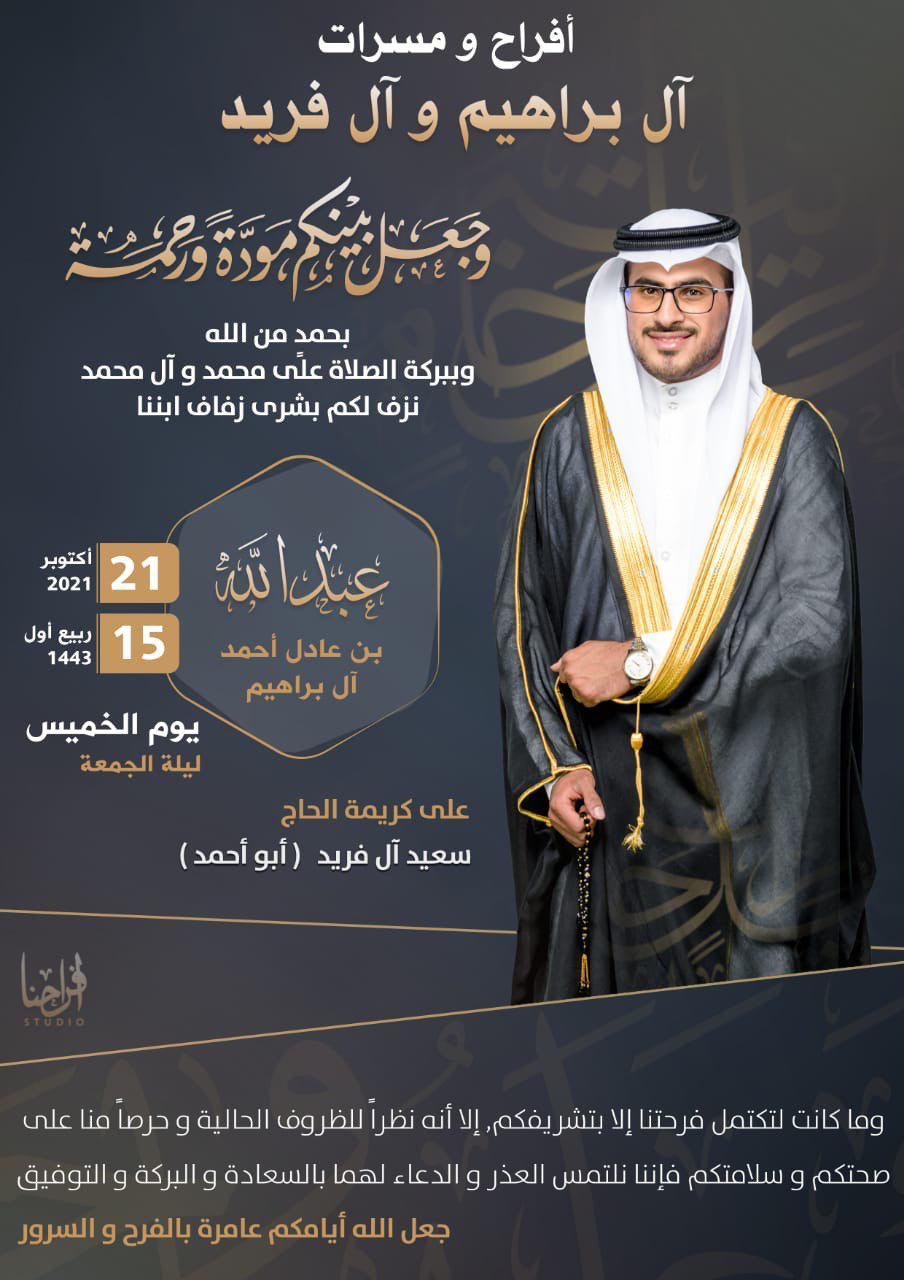 لنشر أخبار الأفراح والمواليد والمناسبات الإجتماعية في محافظة القطيف؛ يرجى التواصل عبر: