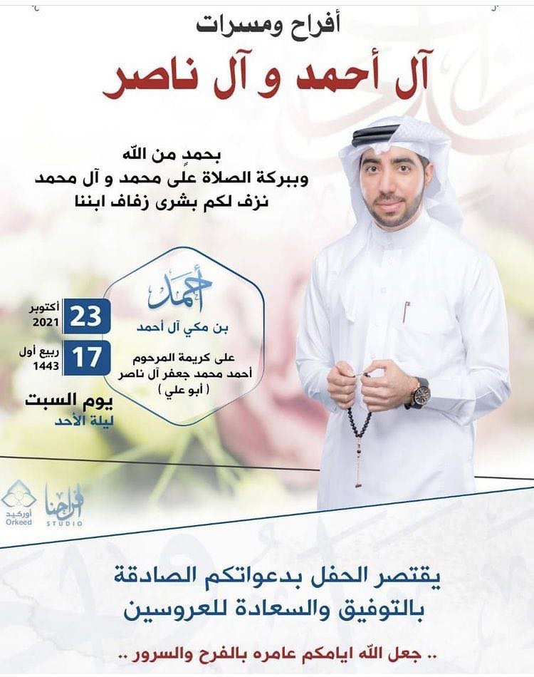 لنشر أخبار الأفراح والمواليد والمناسبات الإجتماعية في محافظة القطيف؛ يرجى التواصل عبر: