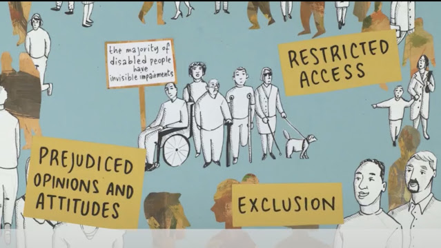 مفاد النموذج الطبي هو إنني أعاني من مراكز التسوق لأن المشكلة تتمثل في الطريقة التي يعالج بها دماغي تلك المدخلات [الحسية] لأنني مشخص بالتوحد. لكن هناك طريقة أخرى للتفكير في ماهية الإعاقة. يطلق على تلك الطريقة: ”النموذج الاجتماعي للإعاقة social model of disability“. في النموذج الاجتماعي، الإعاقة تحدث عندما لا تلبي بيئة الشخص خصائصه الفردية. في النموذج الاجتماعي، لا ننظر إلى هؤلاء على أنهم ذوي إعاقة.