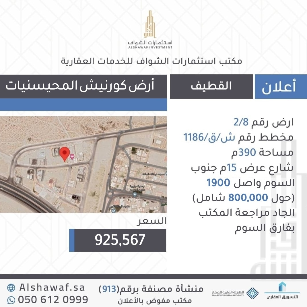 - أرض مقابل كورنيش المحيسنيات «المرجان تاروت»