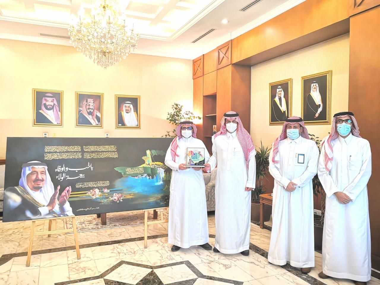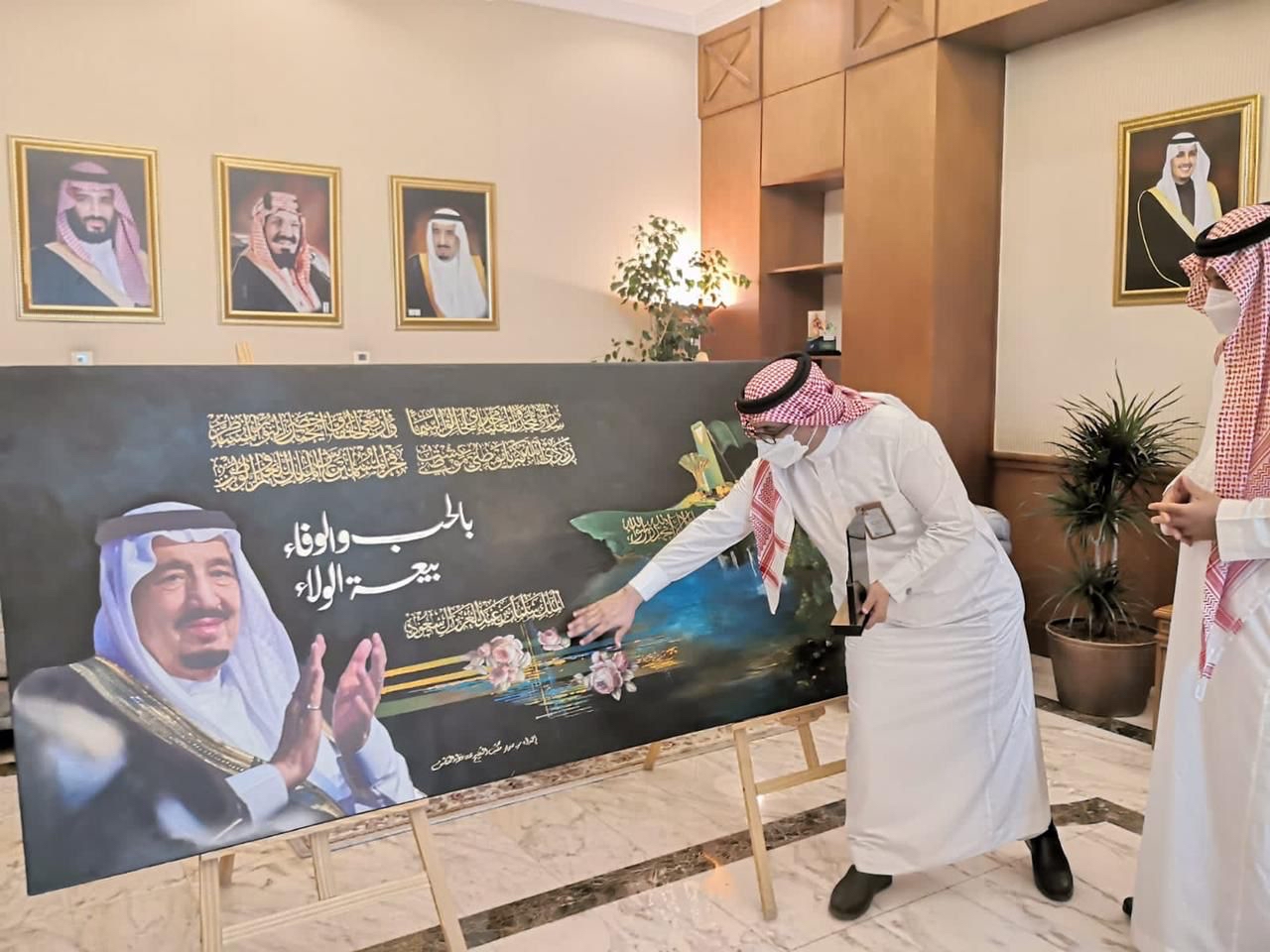 وقدم لوحة فنية تشكيلية عبارة عن شخصية خادم الحرمين الشريفين الملك سلمان بن عبدالعزيز آل سعود بمناسبة ذكرى البيعة والتقرير الكامل لفعاليات المكتب باليوم الوطني ال91 للمملكة تحت شعار ”هي لنا دار“.
