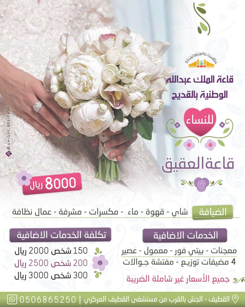 احجزي قاعة زفافك في إحدة قاعات الملك عبدالله الوطنية بالقديح
