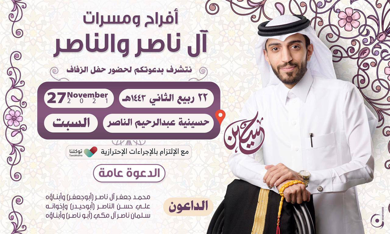 لنشر أخبار الأفراح والمواليد والمناسبات الإجتماعية في محافظة القطيف؛ يرجى التواصل عبر:
