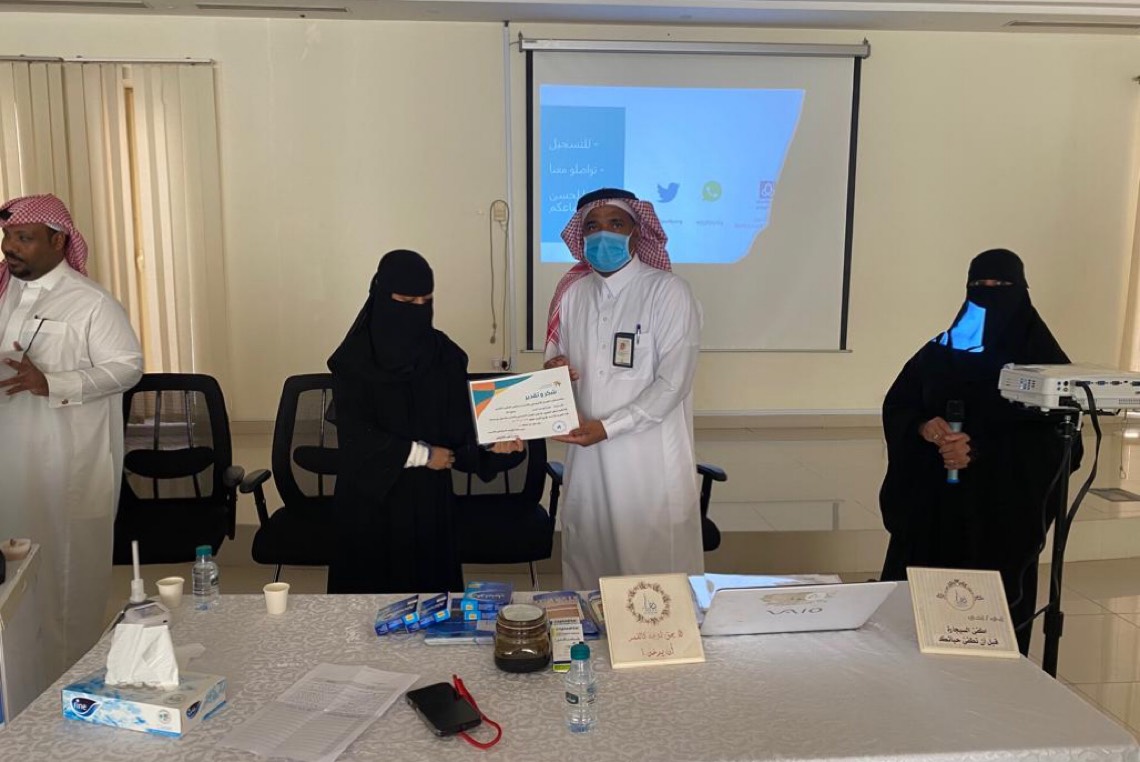 واستهدف البرنامج منسوبي ومنسوبات المكتب ومستفيديه، وبدأ بكلمة تعرفية عن الجمعية وأهدافها، تلاها محاضرة توعوية ألقتها منال العتيق.