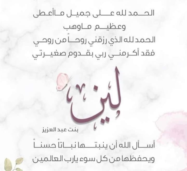 رُزق الشاب عبد العزيز سعود قاسم السيهاتي بمولودة اتفق وحرمه على تسميتها «لين».