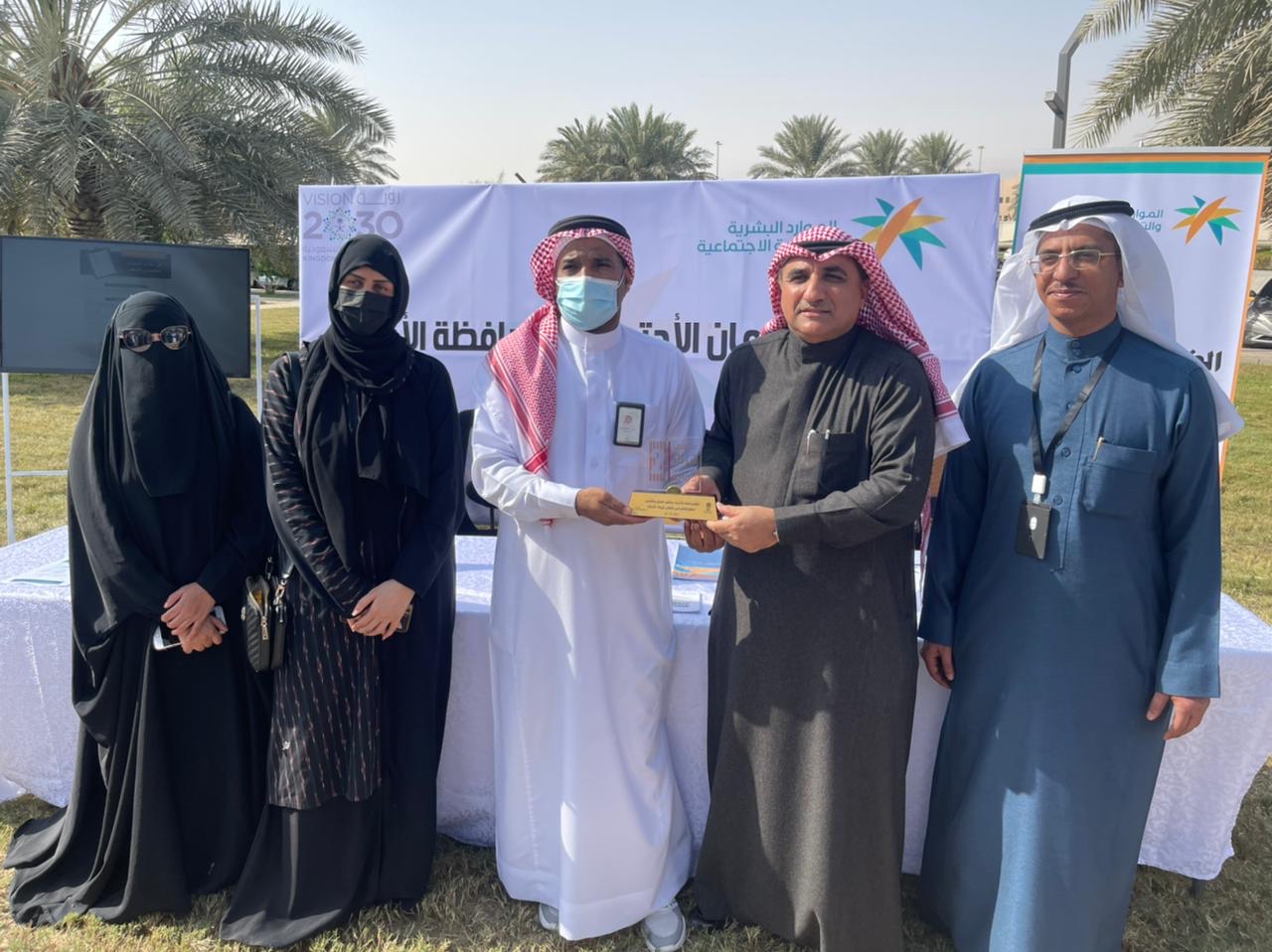 ثم قدم درعًا لركن مكتب الضمان الاجتماعي، وشكر الباحثين والباحثات على المشاركة البناءة في هذا الملتقى.
