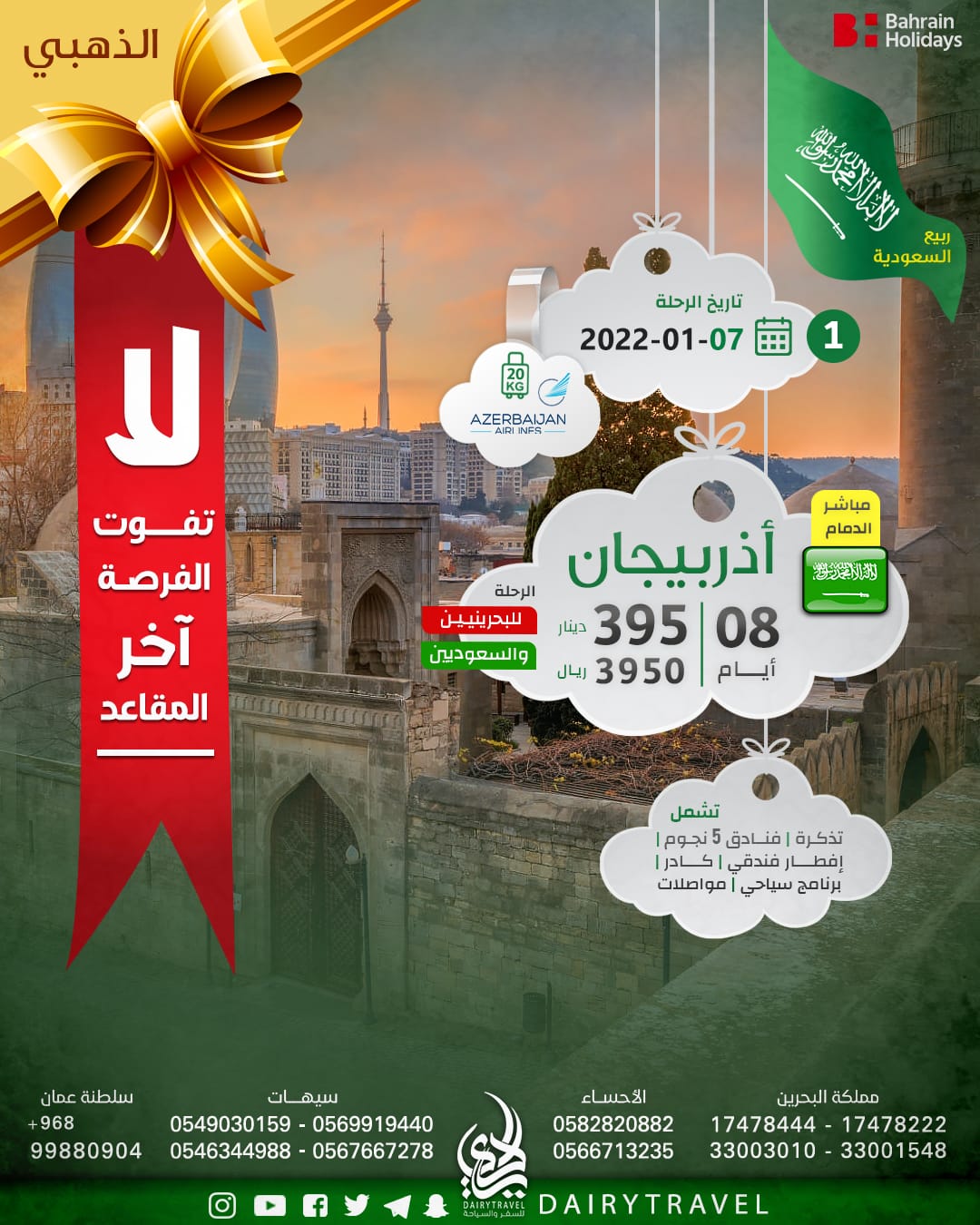 لا تفوت الفرصة .. آخر المقاعد لـ " أوكوانيا - أذربيجان " مع الديري للسفر والسياحة
