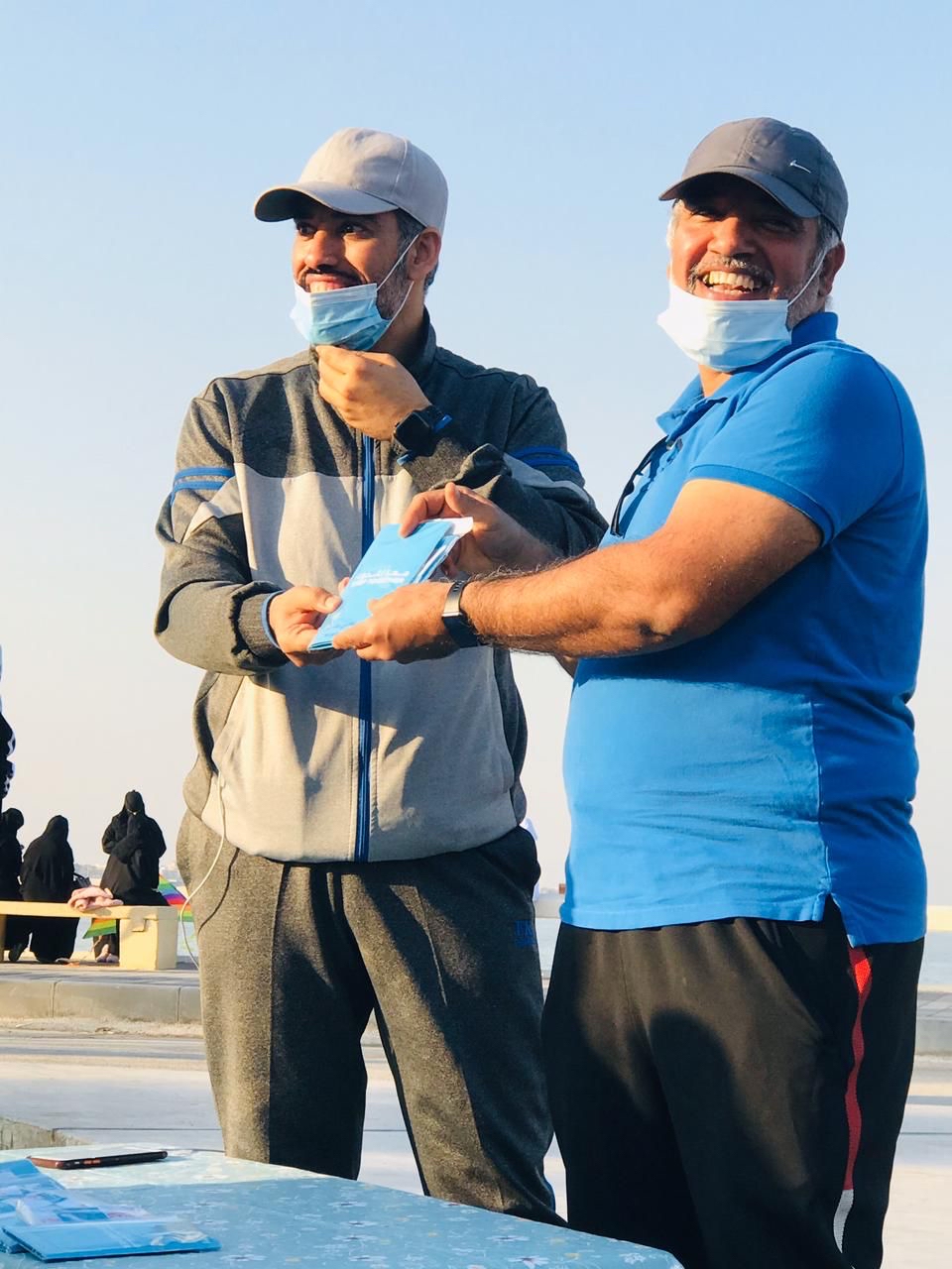 وكان الاحتفاء بتسليم الميداليات، وتوزيع الهدايا، والجوائز المقدمة من إدارة المبادرة لأعضاء المجموعة المشاركين في الفعالية لفئة الكبار، بقطع مسافة 21,1 كم وفئة الصغار لمسافة 10 كم تم انجازها خلال فترة الفعالية لمدة 10 أيام.