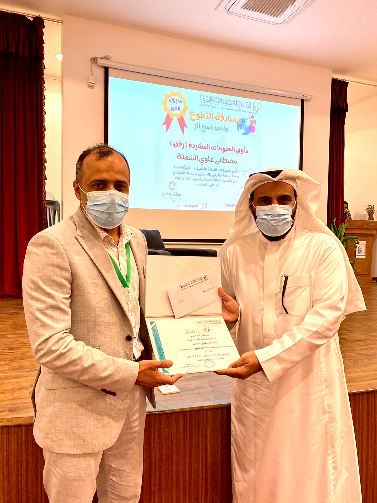 شارك مشروع مأوى الحيوانات المشردة «رفق» لمصطفى الشعلة و”فريق فزعة أهل «4X4»“ و”وصلني معك“ لليلى علي الغنام المركز الأول في مسابقة التطوع التي أطلقها مركز العمل التطوعي بلجنة التنمية الاجتماعية الأهلية بالقطيف خلال الأسابيع الماضية.