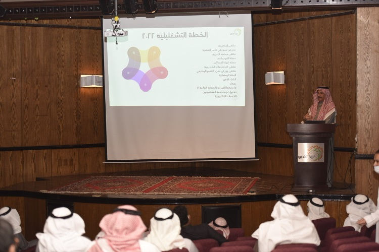 وعرّج على الخطة التشغيلية خلال 2022 لكل من ملتقى التوظيف ومعاهد التدريب، وحملة التبرع بالدم، وحملة شراء المساكن، السلة الرمضانية والشتاء الامن، وتغعيل لجنة خدمة المستفيدين والخدمات الإلكترونية.