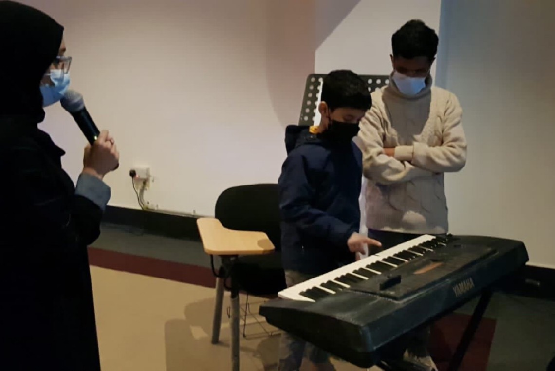 وقدمت المنسف بعض الاساسيات المهمة في الموسيقى وعزف مبدئي على النوته وتجربة لبعض الاصوات المشاركة من الأطفال.