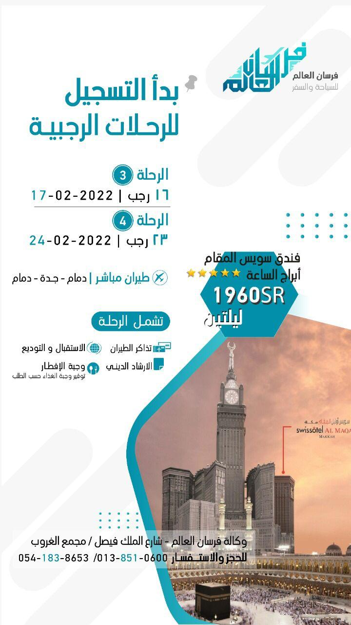 رحلات العمرة الرجبية من وكالة فرسان العالم