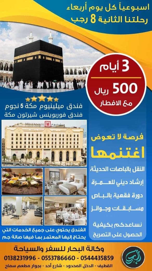 وكالة البحار تعلن عن رحلتها للعمرة الرجبية