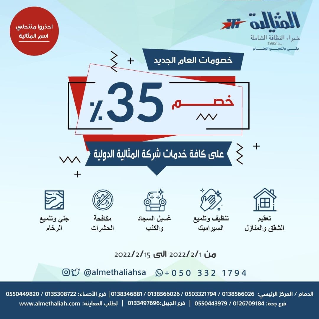 عروض خاصة للعام الجديد و خصم 35 % على خدمات شركة المثالية الدولية خبراء النظافة الشاملة