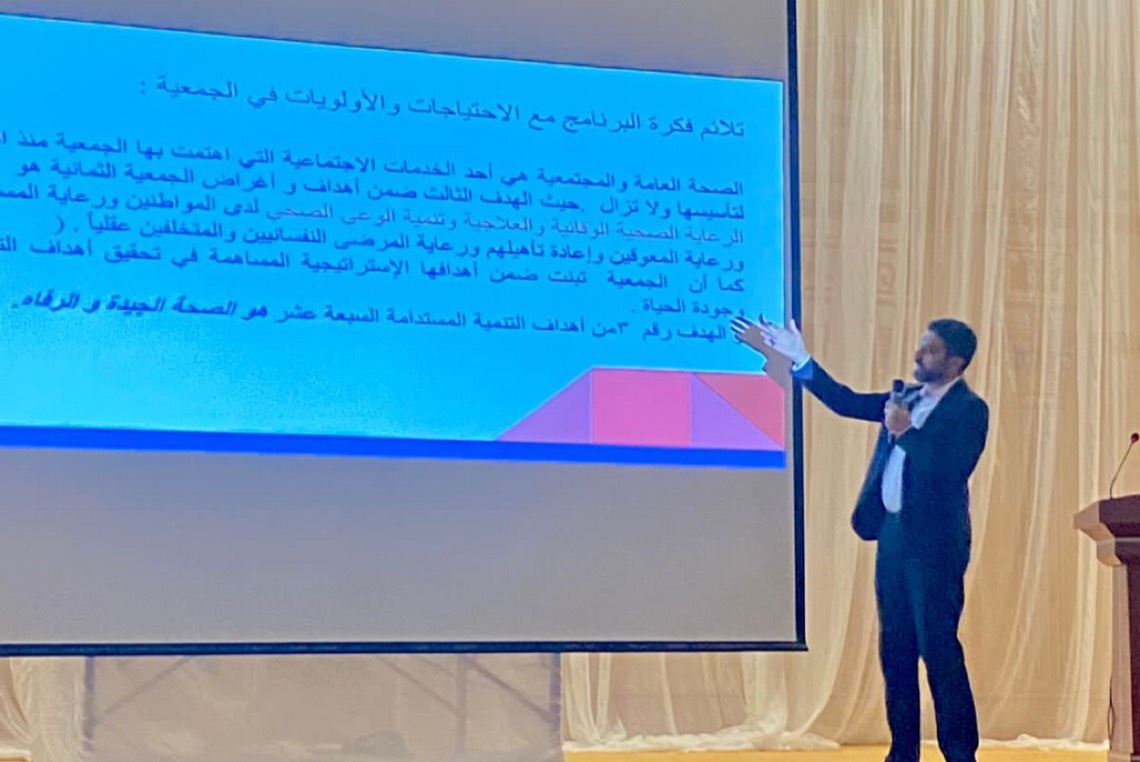 أما الدكتور نايف الدبيس عضو مجلس الإدارة سابقا وأحد قادة تنمية البرامج الصحية بالجمعية، فقدم مقترح برنامج التنمية الصحية والذي يأتي في إطار برنامج التحول من الرعوية إلى التنموية، قائلاً: إن الرهان لنجاح الخطة الاستراتيجية ومستهدفاتها هو المتطوعين أنفسهم، وقبولهم التحدي بإحداث نقلة نوعية في عمل وبرامج الجمعية.